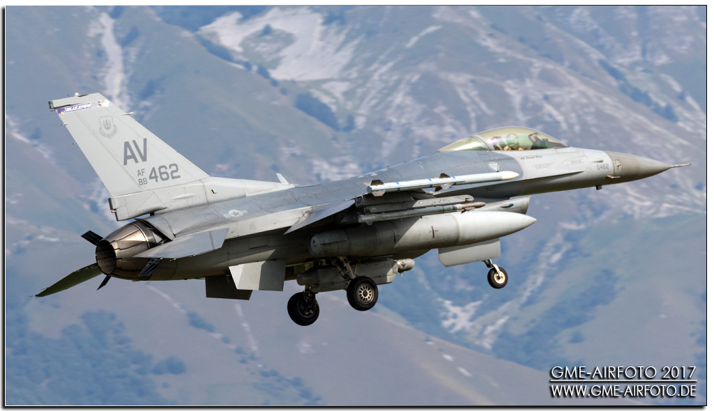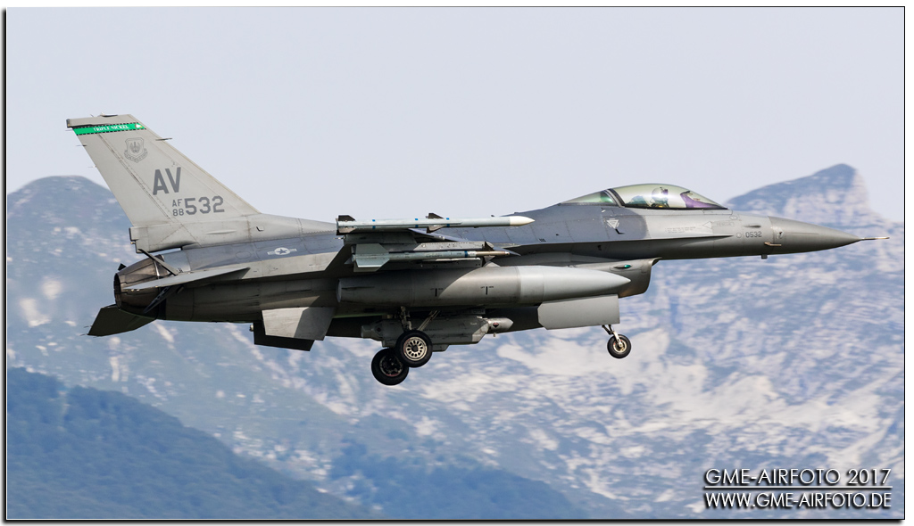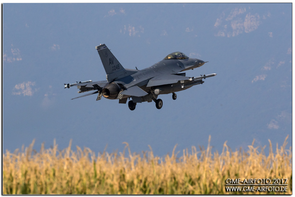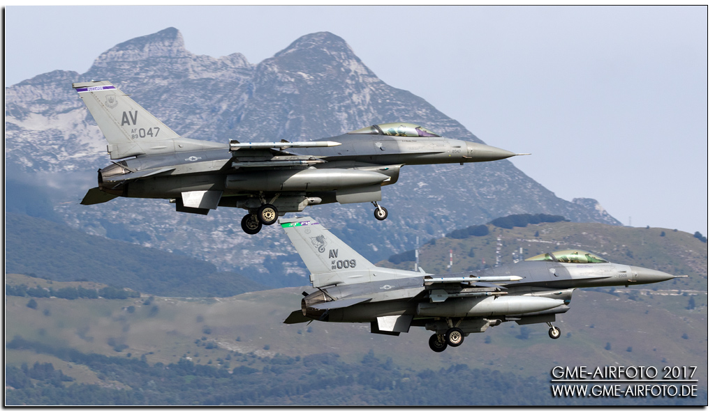 Die Aviano Air Base ist ein Stützpunkt der USAF im Nordosten Italiens. Der Militärflugplatz liegt in der Region Friaul-Julisch Venetien, rund zehn Kilometer nördlich der Provinzhauptstadt Pordenone und etwa drei Kilometer südlich von Aviano am Fuß der südlichen Karnischen Alpen. Ein Abstecher nach Aviano bietet sich also im Rahmen des Italienurlaubes auf dem Weg zur Adria geradezu an. In Aviano ist der 31st Fighter Wing der USAFE stationiert. Dem Geschwader sind zwei fliegenden Staffeln – 510th Fighter Squadron “Buzzards” und 555th Fighter Squadron “Triple Nickel” – mit insgesamt rund 50 F-16C/D unterstellt. Für reichlich Flugbetrieb und schöne Motive mit dem imposanten Alpenpanorama im Hintergrund ist also gesorgt. Unter der Woche wird mit bis zu 12 F-16 in zwei – drei Wellen viel geflogen. Dazu kommen sehr oft Gastflugzeuge nach Aviano, wie der A400M der RAF, F-15E Strike Eagle aus Lakenheath oder CH-47F Chinooks in unserem Fall. Infos zur Aviano AB auf Wikipedia. Beim Besuch Ende August war nur die 510th FS zu Hause in Aviano im Trainingsflugbetrieb, die 555th FS war gerade auf Deployment in Afghanistan. Mit sechs F-16C pro Runde waren trotzdem einige schöne Bilder vom Flugbetrieb aus Aviano möglich: