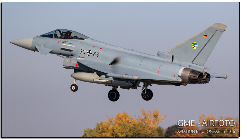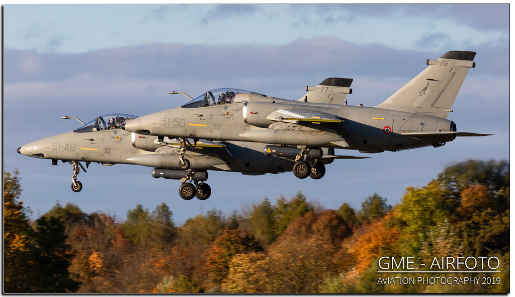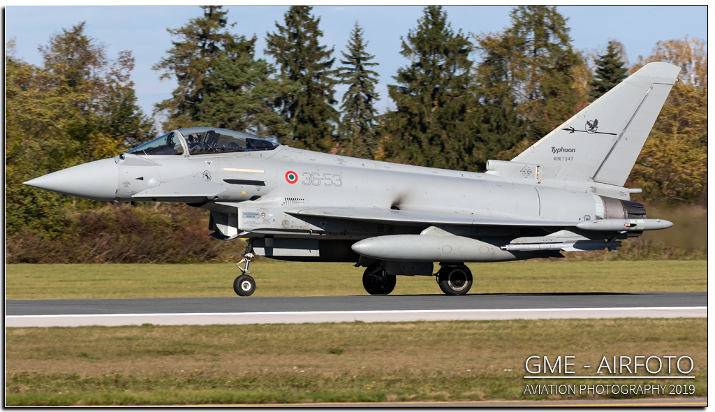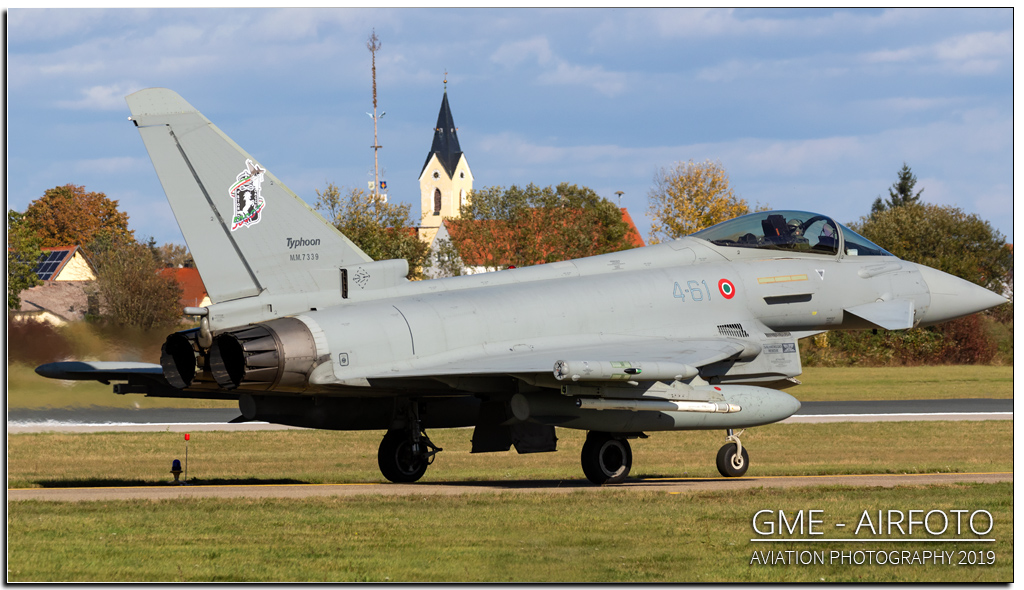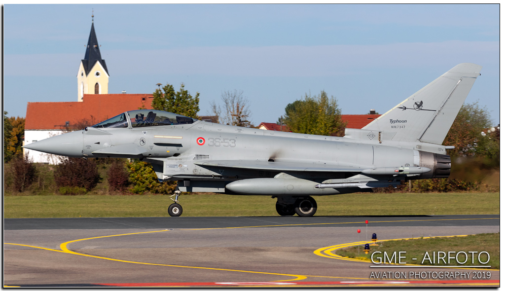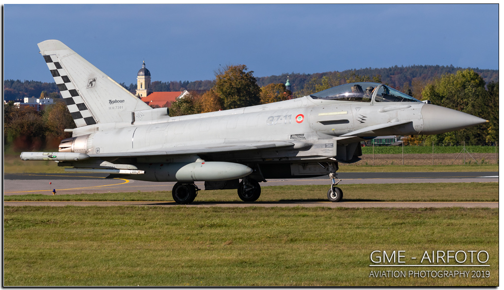 Regelmäßig verlegen Einheiten der Aeronautica Miliare Italiana (AMI) für Übungen (Polygone Range) und das gemeinsame Luftkampftraining auf die bayerischen Plätze in Lechfeld oder Neuburg. Mitte Oktober verwandelte sich die Basis in Zell für zwei Wochen (07. – 18.10.2019) dann schon fast in einen italienischen Stützpunkt. Das 51° Stormo aus dem norditalienischen Istrana – Treviso verlegte fünf ihrer AMX ACOL der 132° Gruppo „Buscaglia“ für das Polygone Training nach Neuburg. Dazu kamen täglich noch sechs bis acht Eurofighter für einen Tankstopp zwischen den Missionen. Istrana beherbergt seit 2017 die QRA – Nord des Landes mit Eurofightern der anderen Geschwader als Detachment. So waren Typhoons von den Stützpunkten in Grosseto (4° Stromo – 9° Gruppo), Gioia del Colle (36° Stormo) und Trapani (37° Stormo – 18° Gruppo) in Neuburg. Das 51° Stormo soll in Zukunft wohl den Eurofighter bekommen und ähnlich wie das 37° auf Sizilien als kleinere Einheit (eine Staffel) die QRA stellen. Weitere Gäste waren der ECR Tornado 98+79 der WTD 61, der aufgrund des geschlossenen Platzes in Manching von Neuburg aus operierte. Das heimische Geschwader hatte ebenfalls den Flugbetrieb erhöht und flog drei Runden mit bis zu acht Eurofightern pro Runde. Aus Laage kam dann noch die erst vor drei Wochen präsentierte neue Sonderlackierung (besser Folierung) des Taktische Luftwaffengeschwader 73 „Steinhoff“ für zwei Touch&Go´s vorbei. Mit der 31+18 „Carbon Warrior“ feiert man 15 Jahre mit dem Eurofighter in Laage / bei der Luftwaffe. Das Bilderbuch Herbstwetter mit fantastischem Licht und malerischen Farbenspiel bot dazu beste Bedingungen zum fotografieren. Bis zum nächsten mal – Ciao Amici!