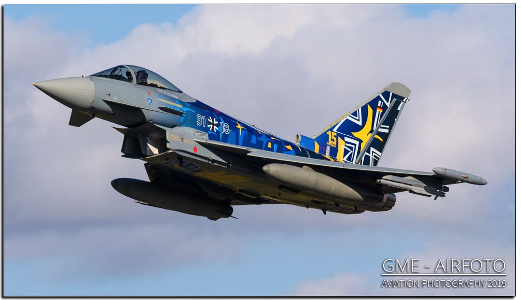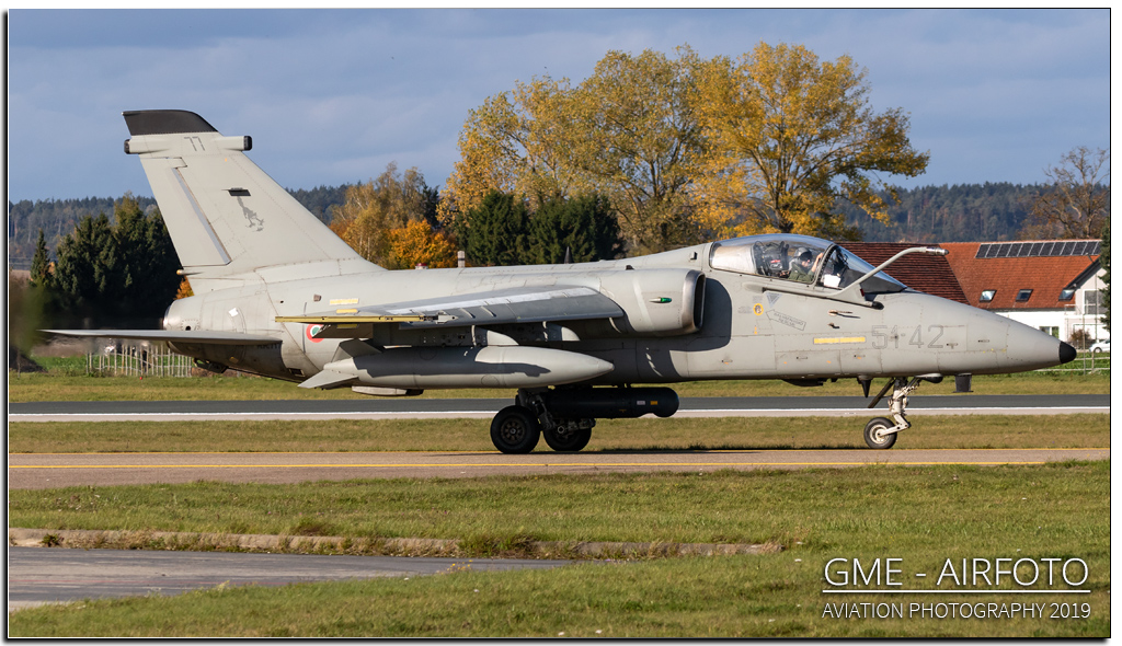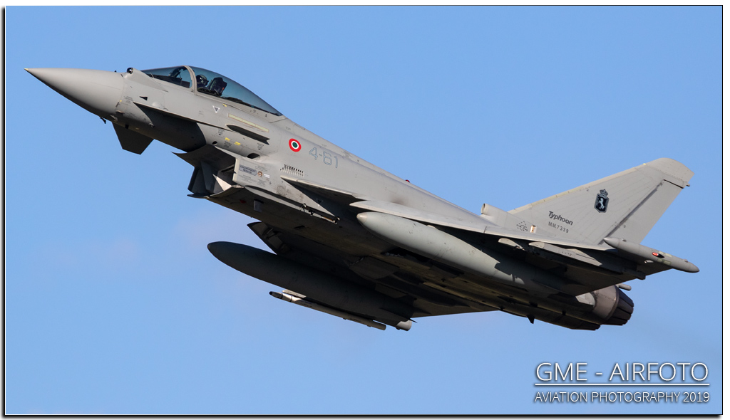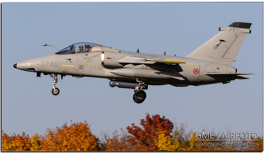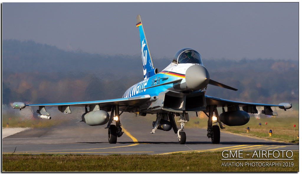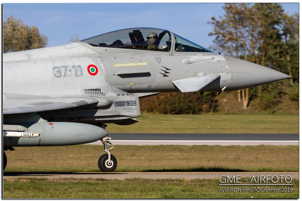 Regelmäßig verlegen Einheiten der Aeronautica Miliare Italiana (AMI) für Übungen (Polygone Range) und das gemeinsame Luftkampftraining auf die bayerischen Plätze in Lechfeld oder Neuburg. Mitte Oktober verwandelte sich die Basis in Zell für zwei Wochen (07. – 18.10.2019) dann schon fast in einen italienischen Stützpunkt. Das 51° Stormo aus dem norditalienischen Istrana – Treviso verlegte fünf ihrer AMX ACOL der 132° Gruppo „Buscaglia“ für das Polygone Training nach Neuburg. Dazu kamen täglich noch sechs bis acht Eurofighter für einen Tankstopp zwischen den Missionen. Istrana beherbergt seit 2017 die QRA – Nord des Landes mit Eurofightern der anderen Geschwader als Detachment. So waren Typhoons von den Stützpunkten in Grosseto (4° Stromo – 9° Gruppo), Gioia del Colle (36° Stormo) und Trapani (37° Stormo – 18° Gruppo) in Neuburg. Das 51° Stormo soll in Zukunft wohl den Eurofighter bekommen und ähnlich wie das 37° auf Sizilien als kleinere Einheit (eine Staffel) die QRA stellen. Weitere Gäste waren der ECR Tornado 98+79 der WTD 61, der aufgrund des geschlossenen Platzes in Manching von Neuburg aus operierte. Das heimische Geschwader hatte ebenfalls den Flugbetrieb erhöht und flog drei Runden mit bis zu acht Eurofightern pro Runde. Aus Laage kam dann noch die erst vor drei Wochen präsentierte neue Sonderlackierung (besser Folierung) des Taktische Luftwaffengeschwader 73 „Steinhoff“ für zwei Touch&Go´s vorbei. Mit der 31+18 „Carbon Warrior“ feiert man 15 Jahre mit dem Eurofighter in Laage / bei der Luftwaffe. Das Bilderbuch Herbstwetter mit fantastischem Licht und malerischen Farbenspiel bot dazu beste Bedingungen zum fotografieren. Bis zum nächsten mal – Ciao Amici!