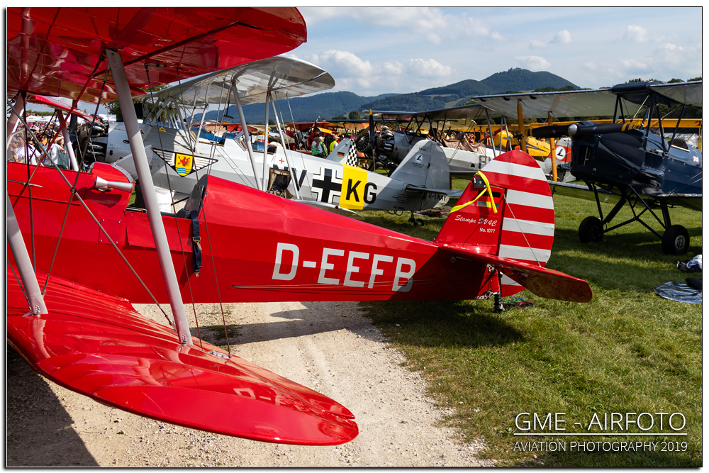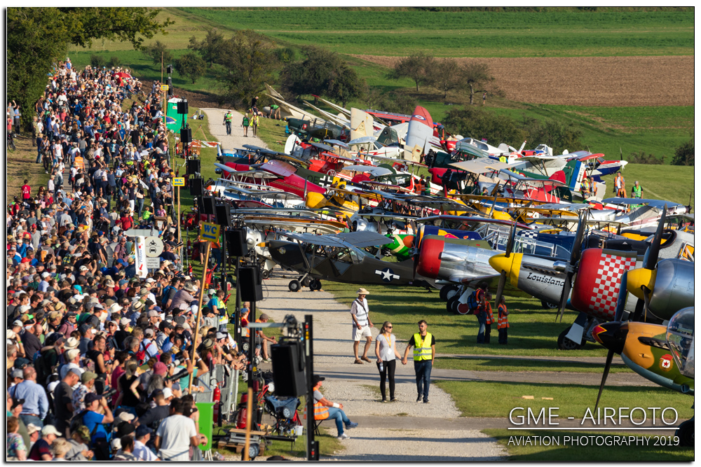Nach einer erneut dreijährigen Pause und dem Umstieg vom früher üblichen zwei-Jahres Rhythmus war das Oldtimer-Fliegertreffen (OTT) auf der Hahnweide 2019 wieder zurück. Die ca. 35.000 – 40.000 Besucher und rund 400 angereisten Oldtimer machten es am zweiten Septemberwochenende (13. – 15.09.2019) zu Europas größtem Treffen dieser Art. Für viele Enthusiasten steht es zusammen mit den anderen beiden großen Oldtimershows in Duxford / Großbritannien und La Ferté-Alais / Frankreich auf einem Level. Wie gewohnt wurde es von der Fliegergruppe Wolf – Hirth, einem von insgesamt neun ansässigen Flugvereinen, organisiert. „Die Kulisse auf der Schwäbischen Alb mit dem vielen Wald, Hügeln und der Burg Teck im Hintergrund ist einfach malerisch“, beschreibt der Pilot einer Bücker Jungmann nach seiner Landung die tolle Lage des südöstlich von Stuttgart gelegenen Segelfluggeländes. Der Segelflugverein mobilisierte für das Wochenende eine Gesamtzahl von rund 200 ehrenamtlichen Helfern inklusive dem bewährten Organisationsteam rund um Jan Denzel und Stefan Kessler. Dazu kommen die Einsatzkräfte von Feuerwehr, Rettungsdienst und Polizei. Seit 1981 gibt es das Treffen auf der Hahnweide. „Wir sind dabei stetig und gesund gewachsen“, erläutert Denzel die heutige Größe des Events. „Die Veranstaltung wird komplett ehrenamtlich durchgeführt. Dadurch können wir Kosten sparen und den Besuch günstig und familienfreundlich anbieten. Es gibt keinen VIP-Bereich, alle stehen hinter dem Zaun und bestaunen gemeinsam die Flugzeuge.“ Das OTT hat sich mittlerweile auch international einen Namen gemacht und die Teilnehmer kommen nicht mehr nur aus dem süddeutschen Umfeld. Die Schweiz, Dänemark, England und bis aus Spanien flog z.B. eine Cessna C-337 „Push Pull“ ein. Geprägt waren die drei Tage von nochmals traumhaften Spätsommerwetter mit Temperaturen an die 30°C, die Besuchern wie den alten Motoren gleichermaßen zu schaffen machten. Das gute Wetter ist jedoch für Flieger, Veranstalter und Besucher gleichermaßen von elementarer Bedeutung um die Durchführung des OTT überhaupt zu ermöglichen. Nach drei Tagen mit intensiven Flugbetrieb zählten die Flugleiter 1112 Flugbewegungen. Belohnt werden auf der Hahnweide seit jeher die Frühaufsteher mit exklusiven Einblicken. Ab Sonnenaufgang öffnen sich für ein paar Stunden die Tore zur Flightline und alle Oldtimer können aus nächster Nähe betrachtet werden. Pünktlich um 8.45 Uhr wird die Flight dann geräumt, den das Flugprogramm beginnt gegen neun. Dort gehörten natürlich die imposanten Warbirds zu den Highlights am Fuße der Teck. Zu sehen gab es zwei North American P-51 Mustang, Curtiss P-40, Supermarine Spitire Mk. XVI, etliche Yak Typen, die Hawker Hurricane XII & Sea Fury oder die Messerschmitt Me262, die direkt von Manching aus anflog. Die buckelige Grasbahn auf der Hahnweide ist für den einzigartigen und entsprechend wertvollen Düsenjet zu riskant. Aus England kamen mit der Republic P47D „Thunderbolt“ und Hispano HA-1112-M1L “Buchon” zwei weitere Raritäten.
