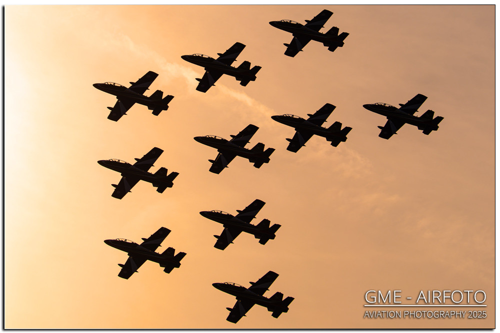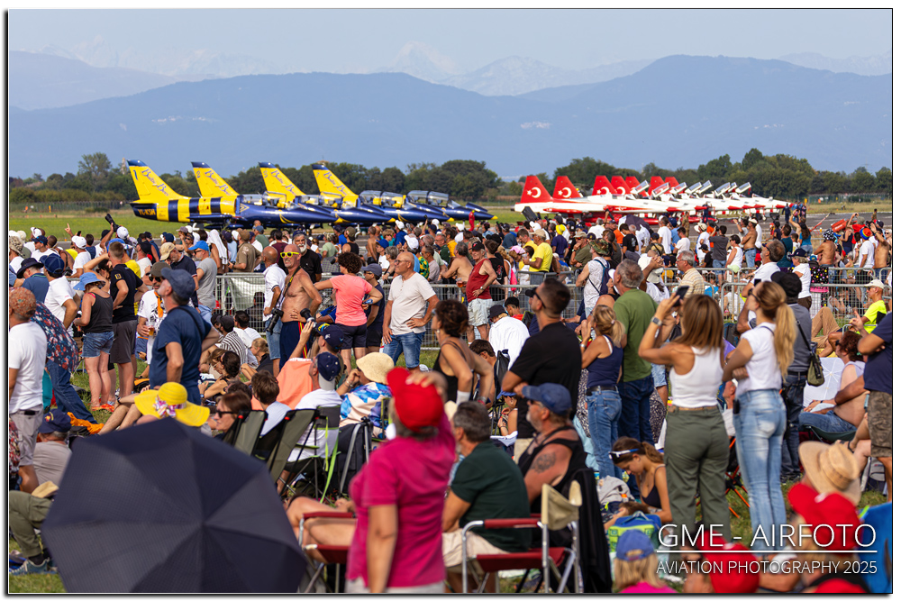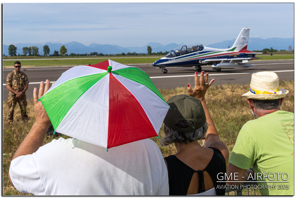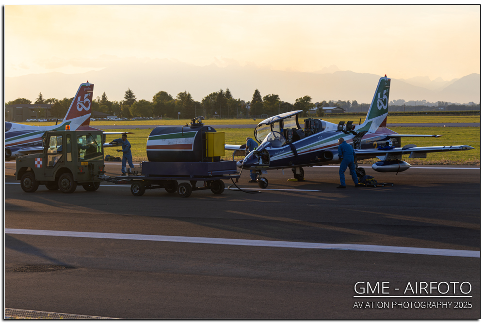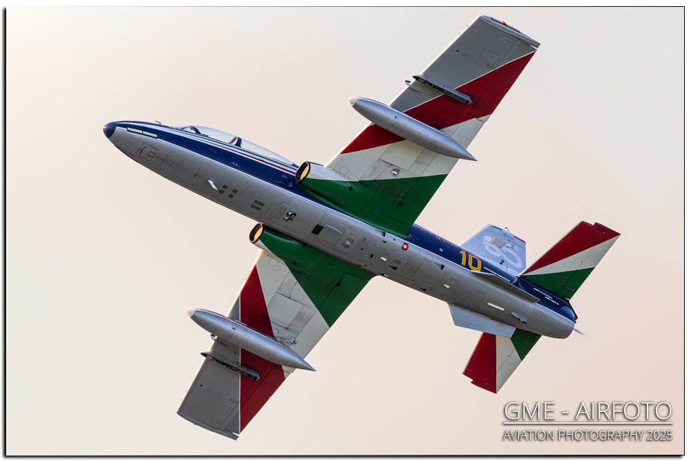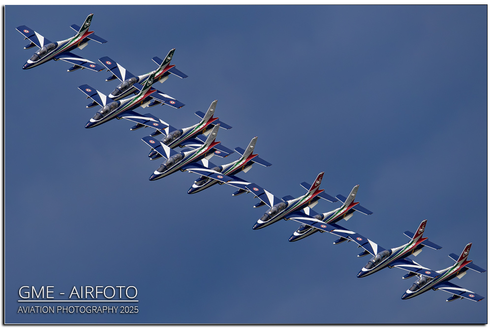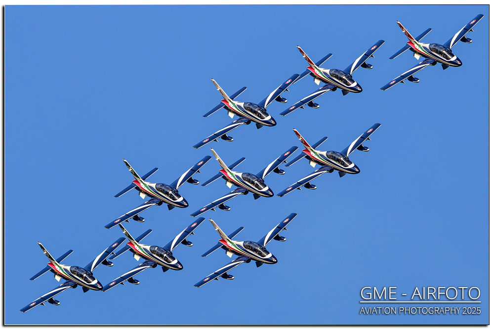 Mit einer großen, internationalen Airshow feierten die Frecce Tricolori ihr 65 – jähriges Jubiläum auf ihrer Heimatbasis in Rivolto. Zusätzlich wurde die ansässige 2° Stormo 100 Jahre. Land & Leute, ein hochkarätiges Teilnehmerfeld und vor allem das schöne, italienische Spätsommerwetter trugen ihren Teil zu einem gelungenen Event bei. Vom 05. bis 07. September 2025 feierten wieder ca. 200.000 Tifosi ihre Nationalhelden.