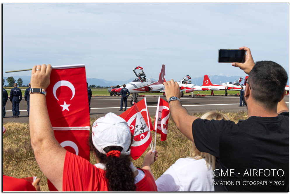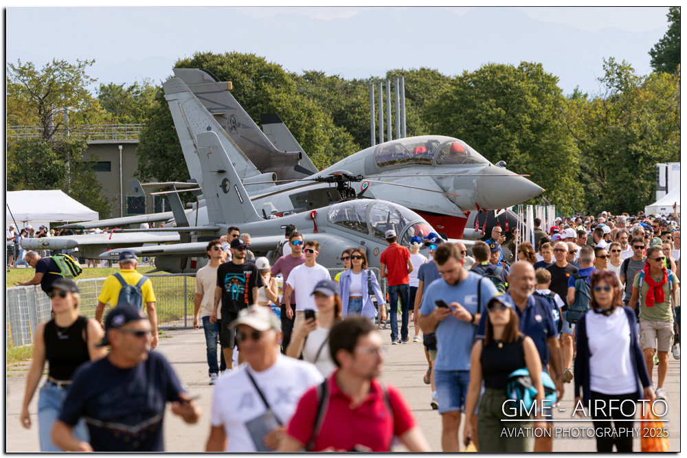 Die Reichweite der Veranstaltung ging dabei weit über die Grenzen des Luftwaffenstützpunkts hinaus. Dank Liveübertragungen auf den offiziellen Social-Media-Kanälen der italienischen Luftwaffe (Aeronautica Militare Italiana / AMI) konnten Tausende digital an der Airshow teilhaben. Am Sonntag übertrug sogar RAI 2, einer der führenden Fernsehsender des Landes, live. Bereits am Freitag dem 05. September 2025 konnten sich interessierte Fotografen für einen Spotterday registrieren und die Abnahmeflüge direkt auf der Base verfolgen.