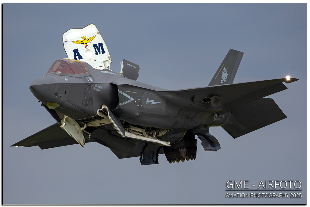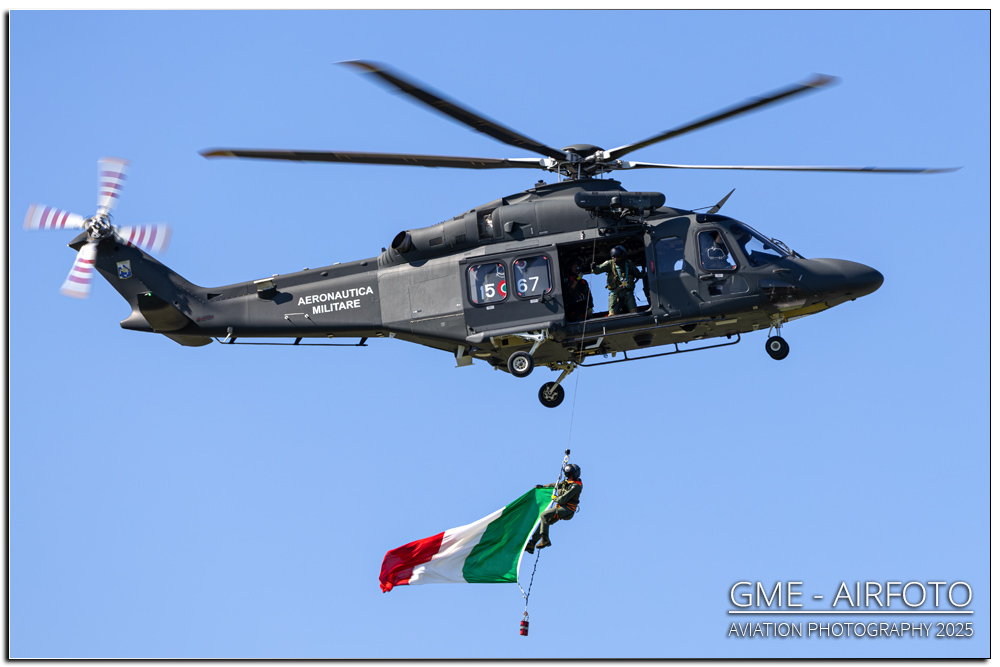 Die AMI präsentierte hier wie gewohnt ihre aktuellen Muster (Eurofighter, C-27 und M-346) durch die Testeinheit der 311° Gruppo / RSV. Dazu kamen italienische Airshow Klassiker wie die SAR – Demo der 15° Stormo mit der Agusta Westland HH-139A. Mit dem Eurofighter wurde ein QRA-Alarmstart gezeigt. Als „Bandit“ musste eine zivil in Italien betriebene Soko G-2 Galeb herhalten. Nicht nur für Tornado Fans war das Fehlen des Jagdbombers im Flugprogramm eine (große) Enttäuschung. Noch dazu flog der Tornado in der wunderschönen Sonderlackierung „50 Jahre Tornado“ parallel auf der Airshow in Tanagra/Athen. Schade! „It´s Italy“ erklärte der AMI PAO hierzu achselzuckend. Eine Erklärung die in ihrer selbstironischen Kürze schon wieder Charme hat. Die positive Überraschung hingegen war das gelungene Duo Display der Lockheed Martin F-35 Lightning II von der 32° Stormo aus Amendola. Das Geschwader präsentierte beide Varianten (F-35A & F-35B) des modernsten Jets im Inventar der AMI sehr dynamisch.