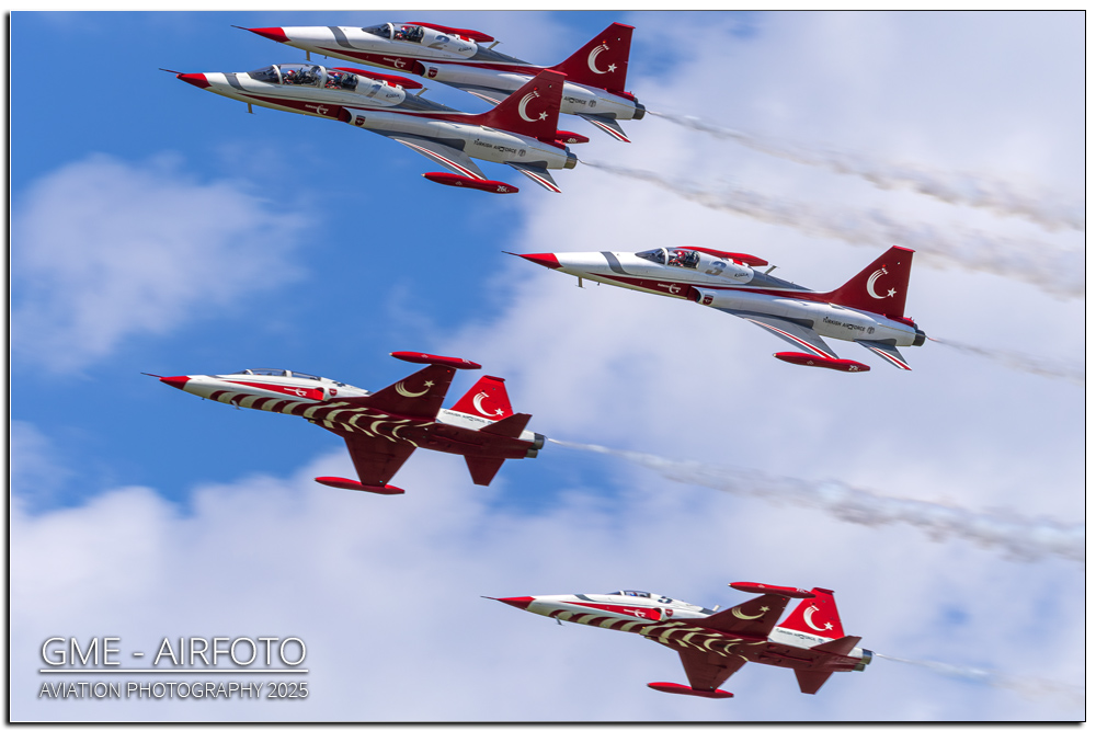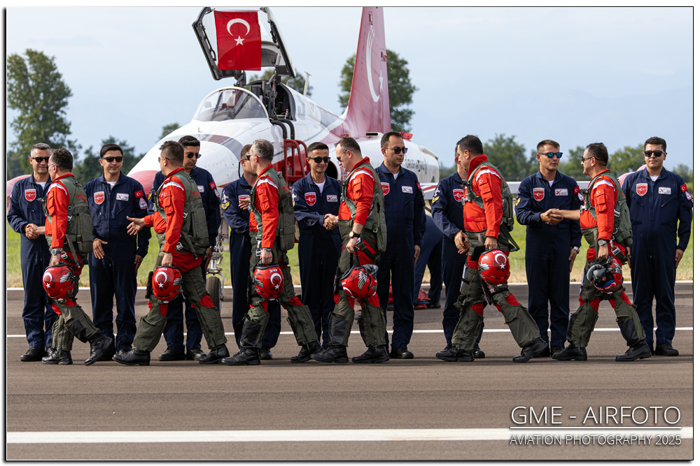 Wenn die Frecce zur Feier laden, fliegen (fast) alle ein. Beim „Stelldichein“ der großen europäischen Teams (Patrouille Suisse, Krila Oluje, Patrouille de France, Midnight Hawks) fehlten eigentlich nur die Red Arrows, die an diesem Wochenende wieder einmal Vorführungen auf der heimischen Insel vorzogen. Das Display der Turkish Stars war eines der sehr wenigen außerhalb der Türkei. Die Black Eagles aus Südkorea sowie die Saudi Hawks waren mit Piloten Delegationen vor Ort. Nach dem Ende der Patrulla Aquila auf der Casa C-101, schickte Spanien das F-18 Hornet Demo Team von der ALA 15 aus Zaragoza. Es blieb das einzige internationale Solo Display. Dies war wohl auch nur dem Fakt des „Einspringens“ geschuldet. Der Rest des Programms bzw. alle „Nicht Kunstflugteam-Displays“ waren rein national.