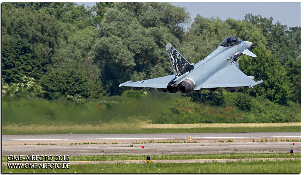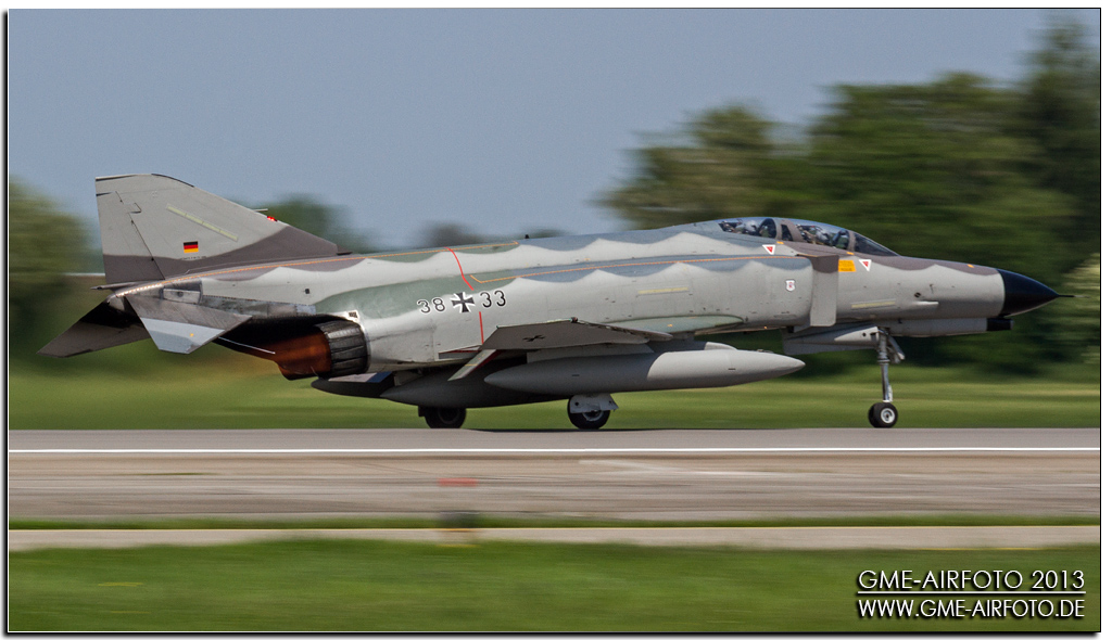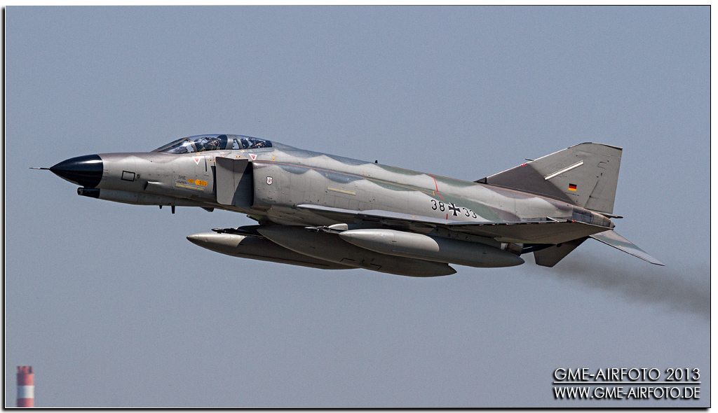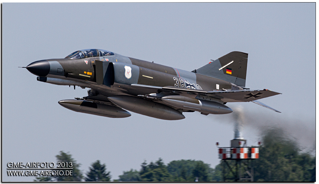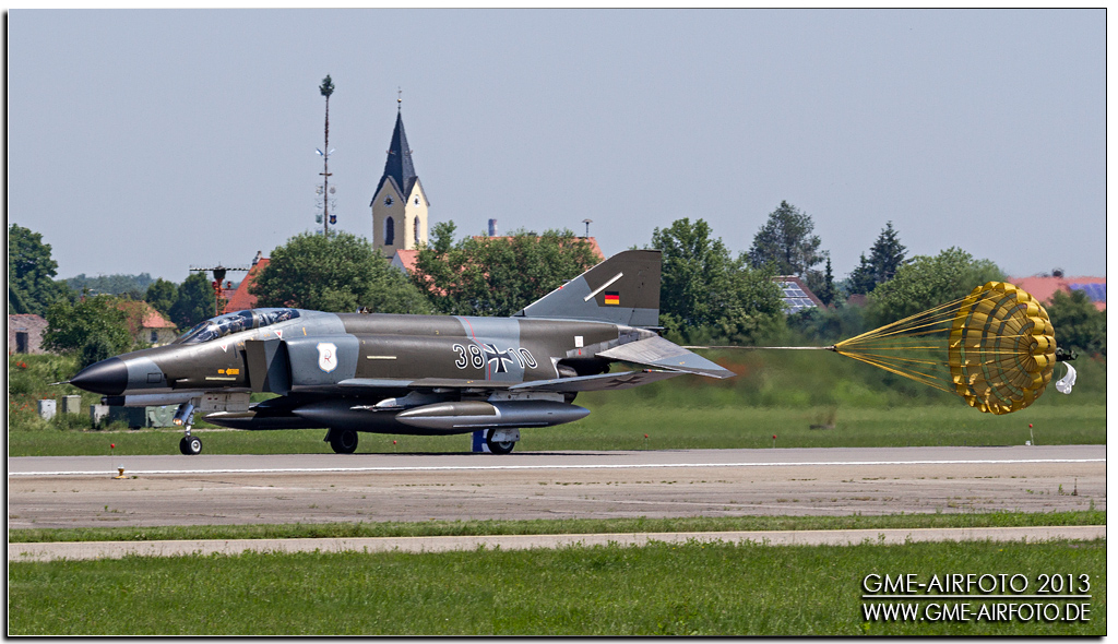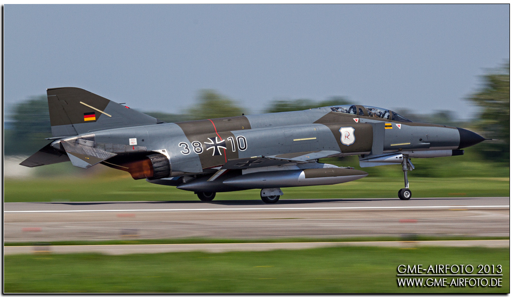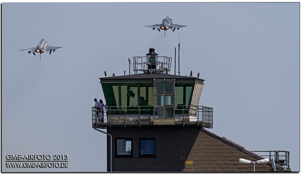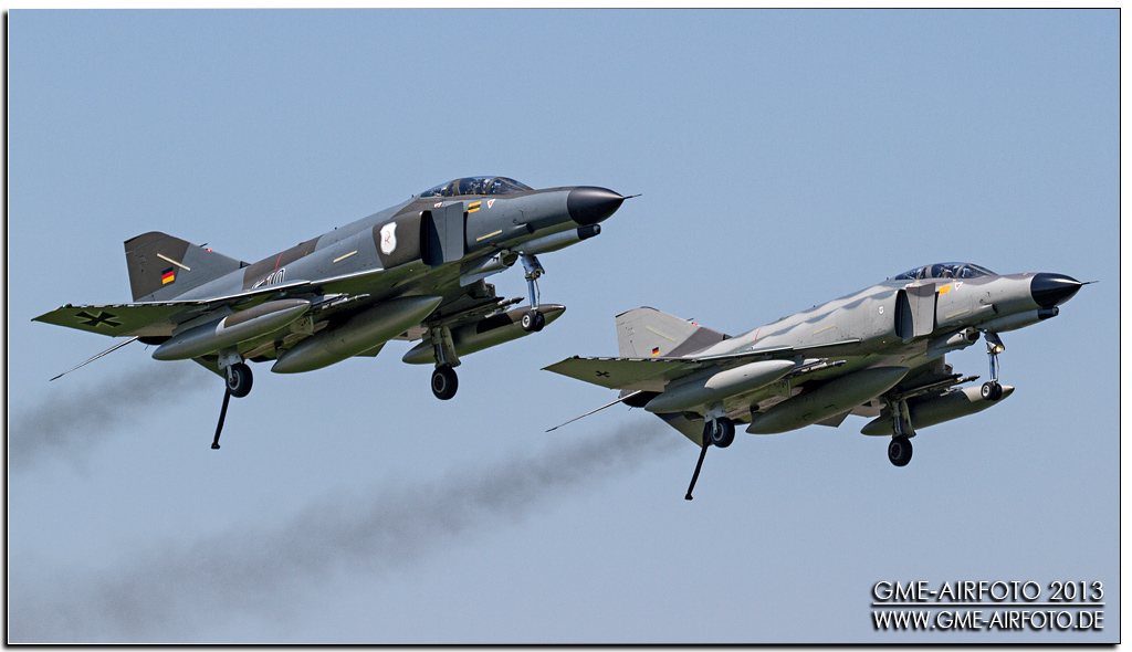 Am 17.06.2013 gab es beim JG74 auf dem Fliegerhorst Neuburg Zell gleich zwei große Ereignisse der Luftwaffe zu bestaunen. Zum letzten mal landeten zwei F-4F der Luftwaffe auf dem Flugplatz des ehemaligen Phantomgeschwaders im Rahmen einer großen Verabschiedungstour durch ganz Deutschland bevor der Ausserdienststellung des Jets Ende des Monats. Bei der „letzten wildem Flucht“ (Last Stampede) der Rhinos weg von ihrem Heimatplatz in Wittmund, überflogen die beiden F-4F in den Retrolackierungen aktive wie ehemalige Luftwaffenflugplätze in Deutschland.