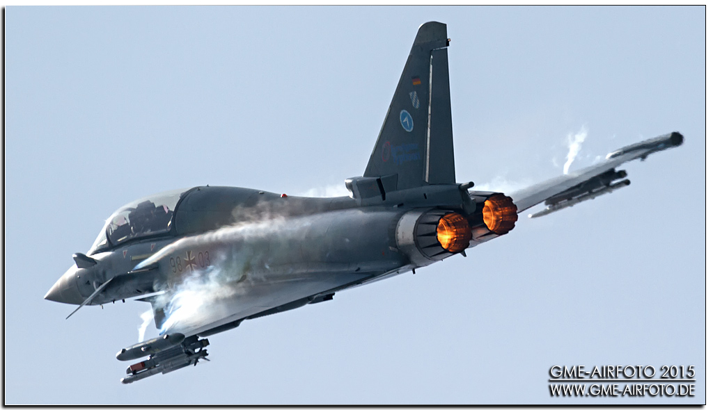 Die Augen der Besucher richten sich auf die Südbahn. Mit vollem Schub erhebt sich ein Hubschrauber vom Typ BO 105P zu einem senkrechten Spiral-Steigflug, um dann wieder senkrecht Richtung Boden zu „stürzen“. Am Standort Manching beginnt ein besonderes Highlight des Besucherprogramms: die Flugvorführungen. Zwischen 13 und 14 Uhr zeigen Testpiloten der Wehrtechnischen Dienststelle für Luftfahrzeuge und Luftfahrtgerät der Bundeswehr (WTD 61) in Manching den Zuschauern Flugmanöver, wie sie im Rahmen von Erprobungsflügen regelmäßig durchgeführt werden müssen. Nächster Programmpunkt: ein Transporthubschrauber CH-53 und das Transportflugzeug C-160 Transall. Die Transall steigt mit offener Laderampe in die Luft auf. So wird auch im Einsatz geflogen, wenn zum Beispiel Material aus geringer Höhe abgeworfen wird. Kurze Zeit später startet ein Tornado mit ohrenbetäubendem Lärm über der Zuschauermenge. Danach zeigt ein Kampfhubschrauber Tiger, wie schnell und wendig er ist. Kerosingeruch erfüllt inzwischen die Luft. Mit donnernden Triebwerken sticht ein Eurofighter in den stahlblauen Himmel. Unter höchster Konzentration steuert der Pilot seine 11 Tonnen schwere Maschine präzise entlang des vorgegebenen Kurses. Sogar in den Werften können die Gäste das Spektakel am Himmel verfolgen. Mit modernen Kinotheodoliten – Flugbahnvermessungsanlagen – wird die gesamte Flugvorführung gefilmt und in Echtzeit auf die Videowalls projiziert. Kleine Punkte am Horizont erscheinen hochauflösend auf den Bildschirmen.